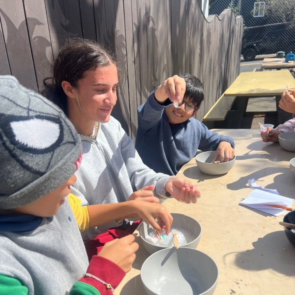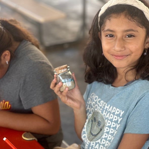 Each student receives a gift bag with their Crystal and a Learn Card (detailing the mineralogy and healing properties of their crystals).