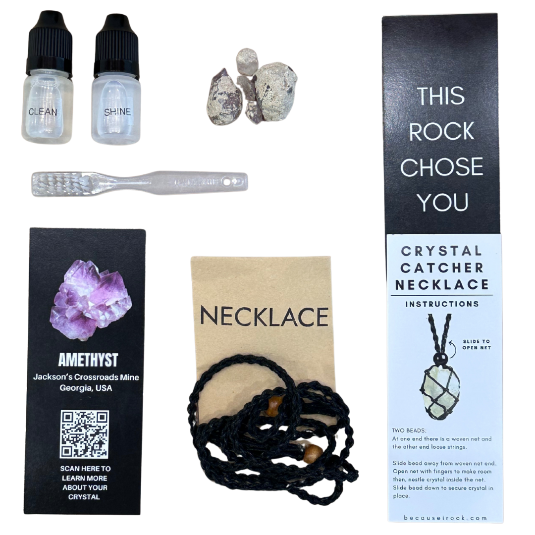 4-6 Stones with Clean & Shine Solution, Cleansing Brush, Crystal Catcher Necklace